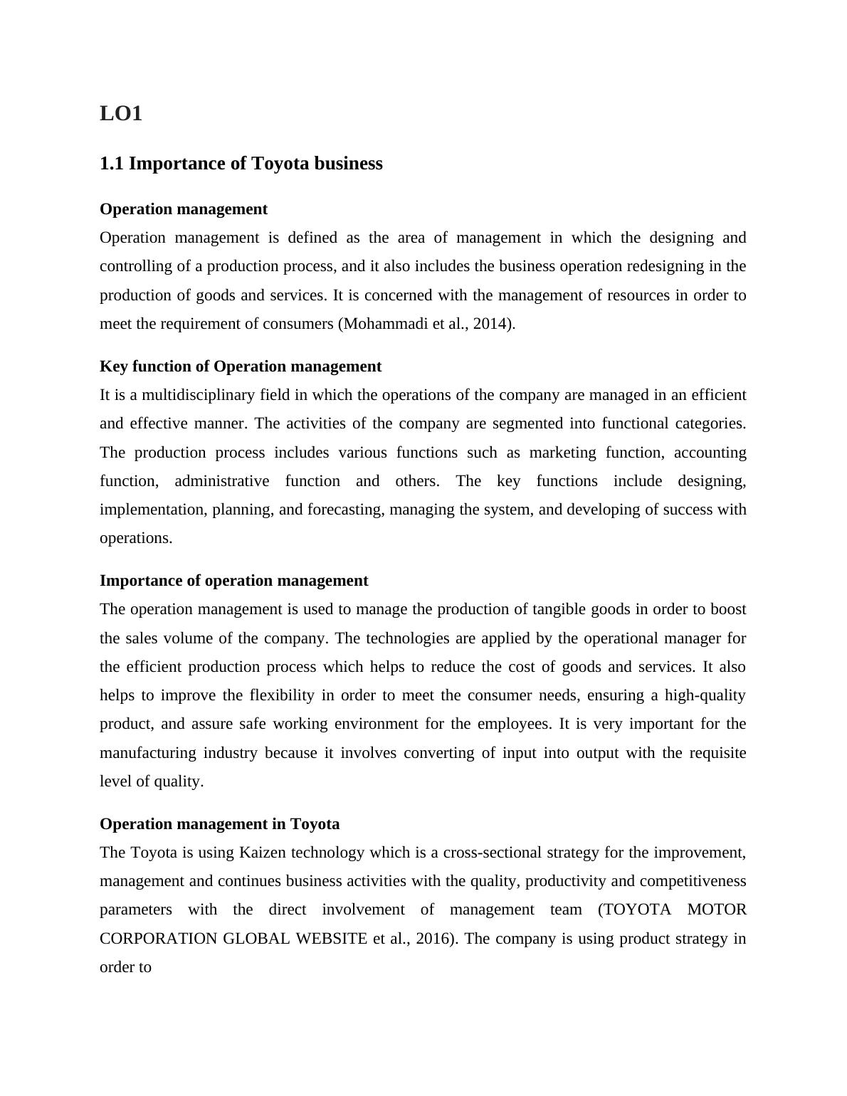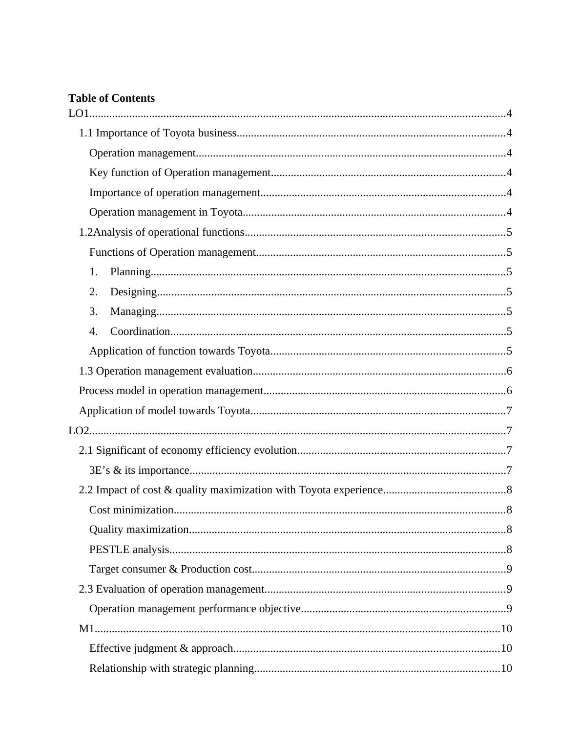 Toyota Company: Comprehensive Operations Management Report