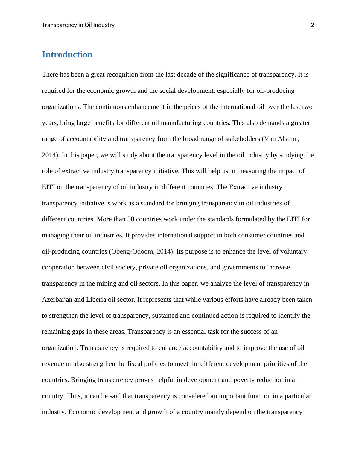 2014). In this paper, we will study about the transparency level in the oil industry by studying the