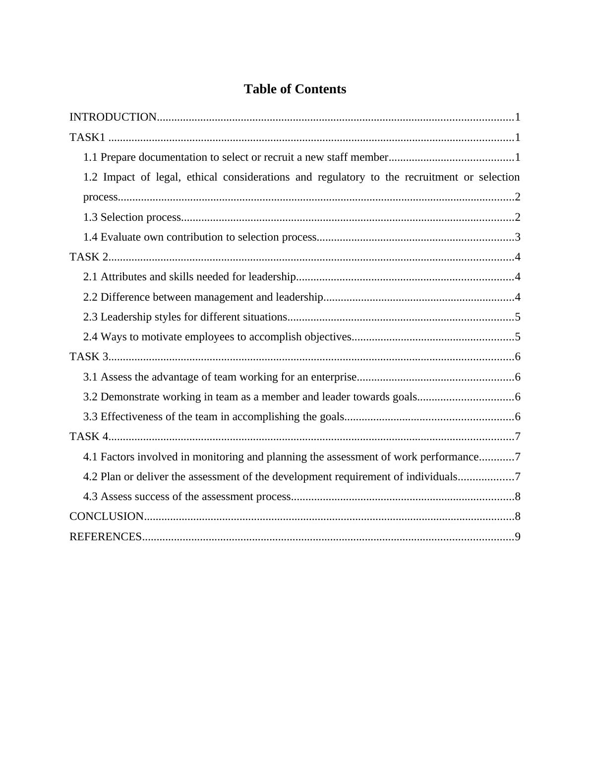 1.1 Prepare documentation to select or recruit a new staff member...........................................1